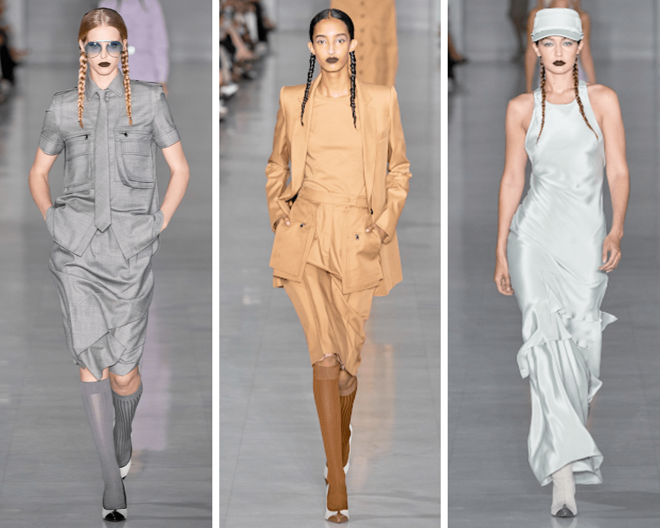 Monochromatic and tonal looks are constantly being updated each season and I am attracted to Max Mara’s take on it. The show started off with an array models wearing all grey tonal looks. The grey button down shirt with asymmetrical hem skirt and tie to match to the all nude look paired with the blazer, tee and knee length skirt with oversized pockets makes me thrilled for the Spring season. Not to mention the bias cut dress look that matched literally head to toe.