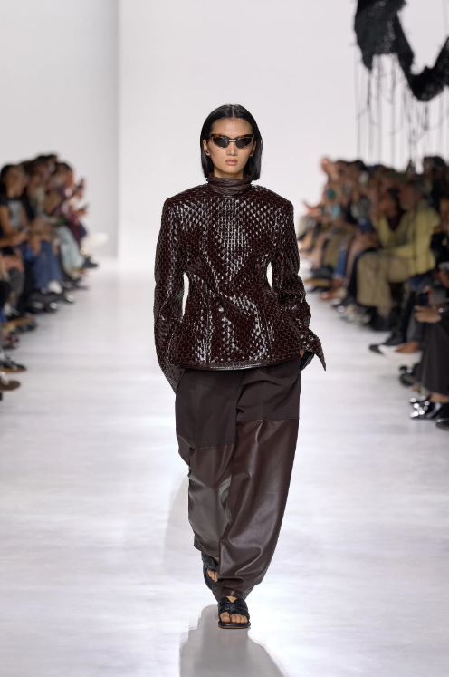 Designers responded to global anxiety–political instability, climate concerns, and security fears by putting armor on the runway.