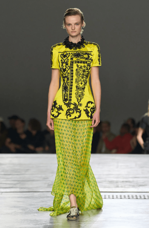 Chartreuse made its debut on Tibi’s runway at New York Fashion Week, which featured chartreuse separates that immediately set the tone. Next up, in London, we saw Burberry, Erdem, and Simone Rocha all prominently feature the shade. In Paris, it had made its rounds from Saint Laurent’s silk slip dresses, Valentino’s tailored suits, to Balenciaga’s leather separates and Alaïa’s sculptural pieces.