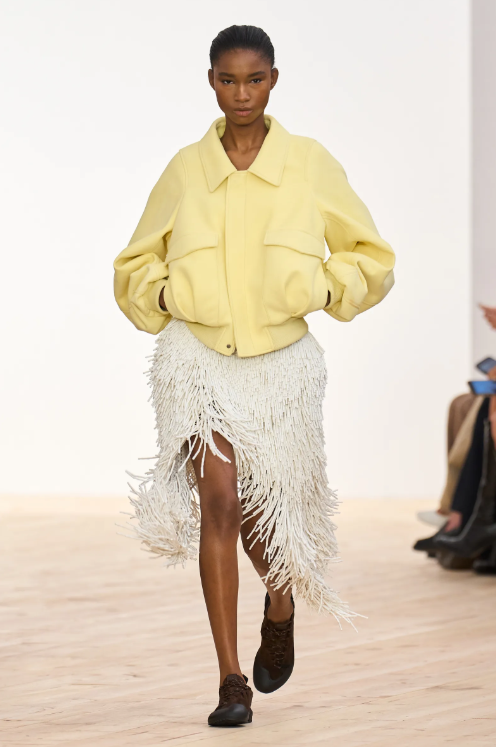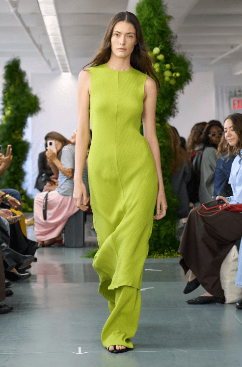 What made it work was the variety. Chartreuse appeared in different textures, such as silk, leather, knit, and technical fabrics. It was styled both as statement pieces and as subtle accents. Some designers went monochrome head-to-toe, while others used it as a pop against neutrals.