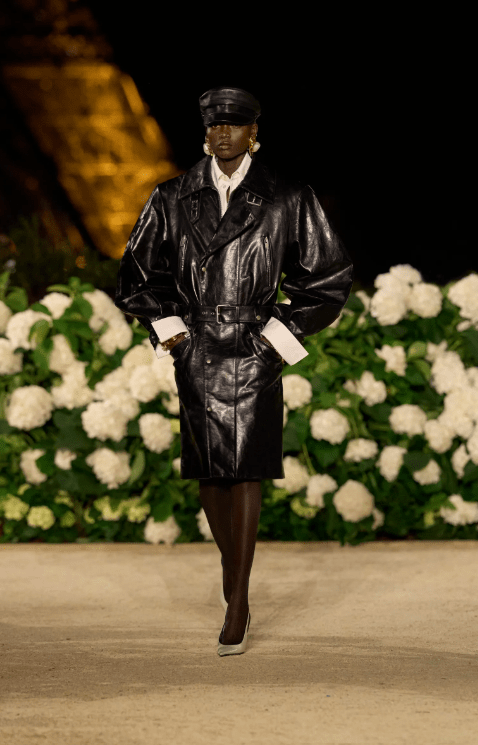 Anthony Vaccarello opened Paris Fashion Week at Saint Laurent with a stunning series of black-and-white looks. Leather jackets styled with matching pencil skirts—sharp tailoring in deepest black. The palette was minimal, but the impact was maximum.